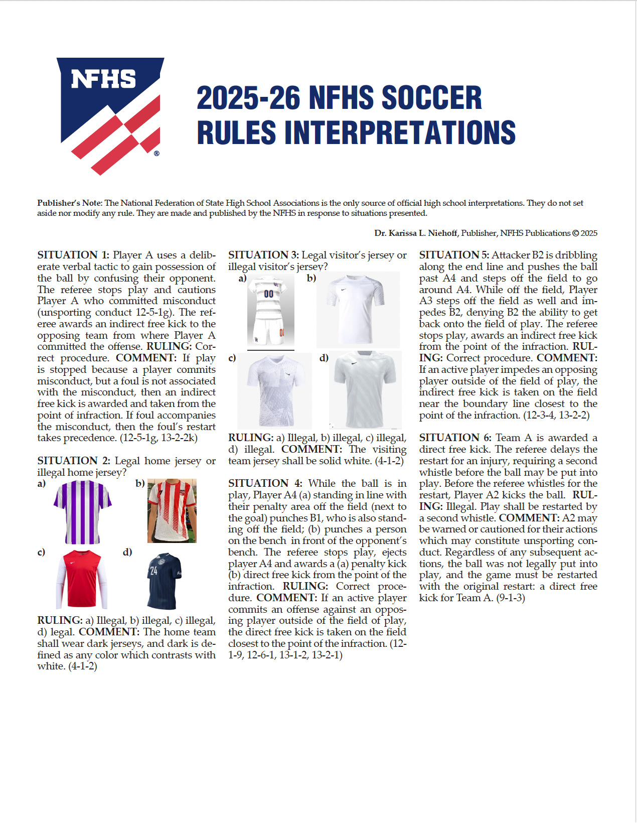 The NFHS is the official source of high school soccer rules interpretations. The situations considered in the 2025-26 NFHS Soccer Rules Interpretations are published in conjunction with the 2025-26 Soccer Rules Changes.